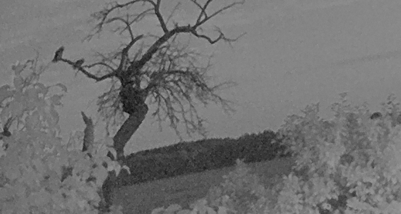 Wir haben aus einer 4 Stunden langen Audioaufnahme der Rufe einige Abschnitte ausgewählt. Die Videos zeigen Aufnahmen einer Wildkamera von den Jungvögeln, die sich im Bereich unserer Hofstelle niederlassen. Auf einer Aufnahme einer Überwachungskamera sind zwei der Jungvögel zu sehen, wie sie sich kurz auf dem Boden niederlassen: