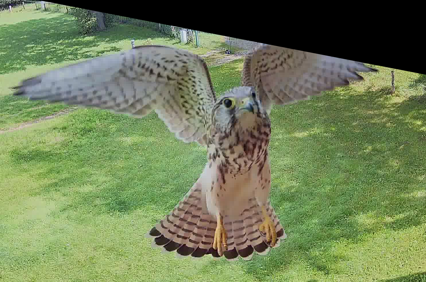 In unserer Gegend sind Turmfalken ansässig. Im August 2023 sind uns zufällige Aufnahmen eines Turmfalkenpaares mit einer Überwachungskamera gelungen.